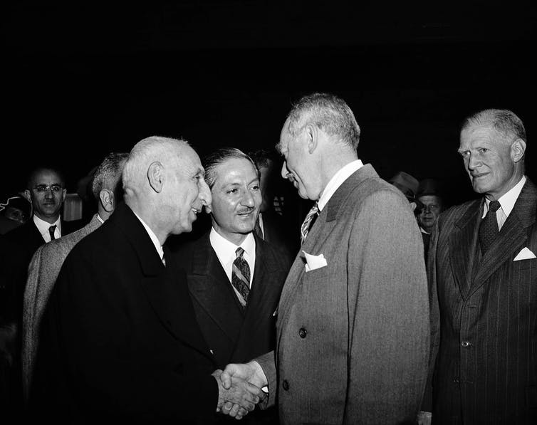 U.S. Secretary of State Dean Acheson, right, greets Iranian Premier Mohammed Mossadegh in Washington in 1951. Two years later, the U.S. orchestrated a coup to oust democratically elected Mossadegh.