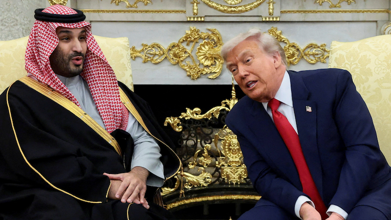 "This & the possible sale of fighter jets to Saudi Arabia needs to be contextualized in coverage as the result of billions upon billions in bribes made from MBS to Trump via real estate projects, the jet gift, investment in Blackstone, crypto, and who knows what other payoffs we don't even know about," said journalist and podcaster Dan O'Sullivan.