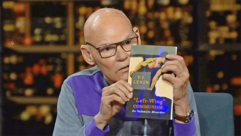 Carville brought a copy of a hundred-year-old book by Vladimir Lenin with him to use as a prop for his attacks on the left.
