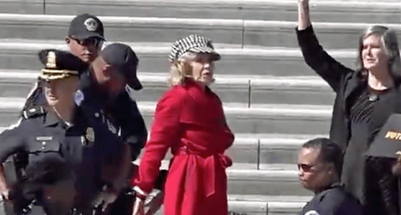 Actress Jane Fonda being arrested at the U.S. Capitol (screengrab)