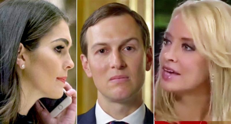 Composite image of Hope Hicks, Jared Kushner and Kayleigh McEnany (screengrabs)