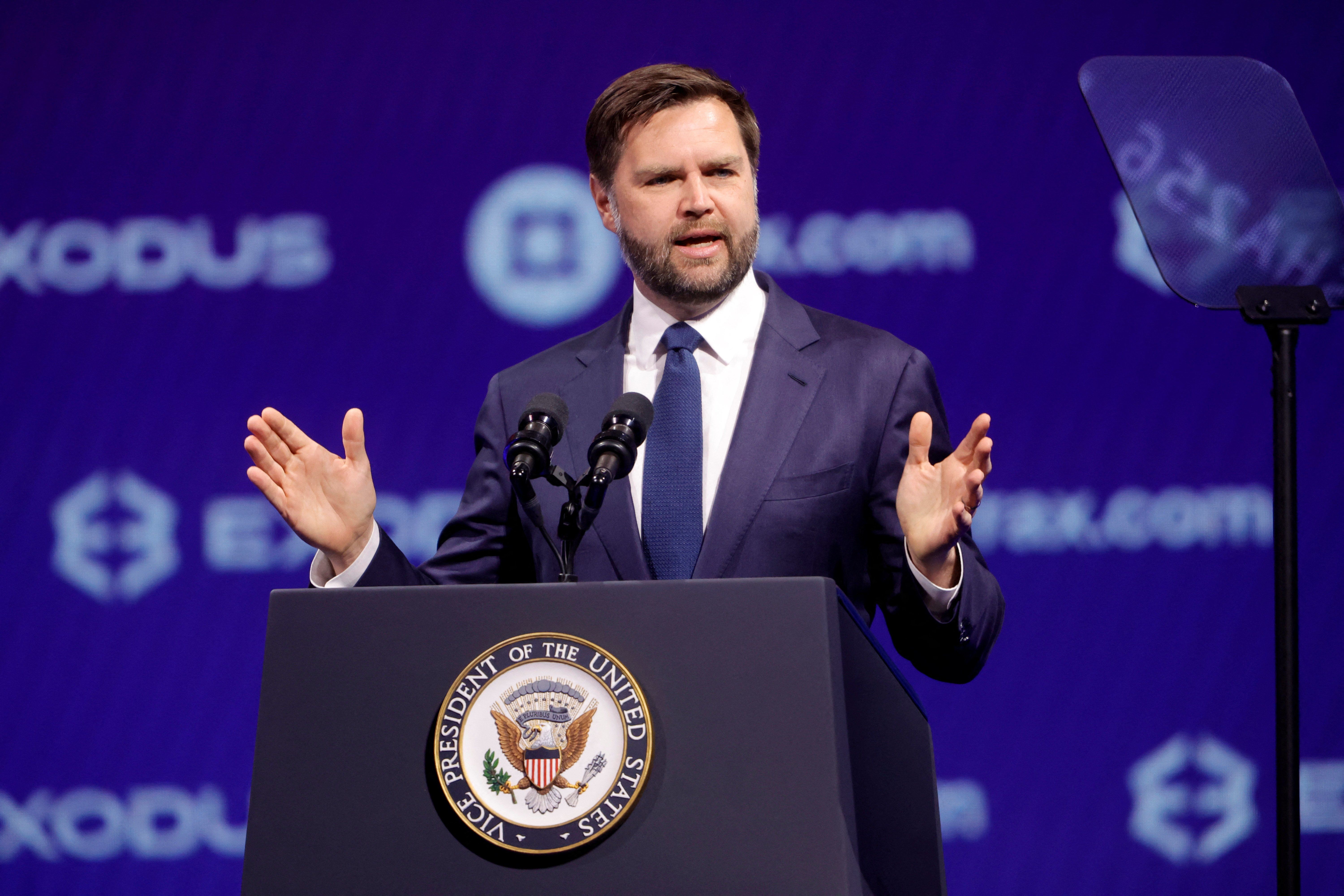 U.S. Vice President JD Vance speaks at a Bitcoin conference in Las Vegas, Nevada, U.S., May 28, 2025. REUTERS/Steve Marcus