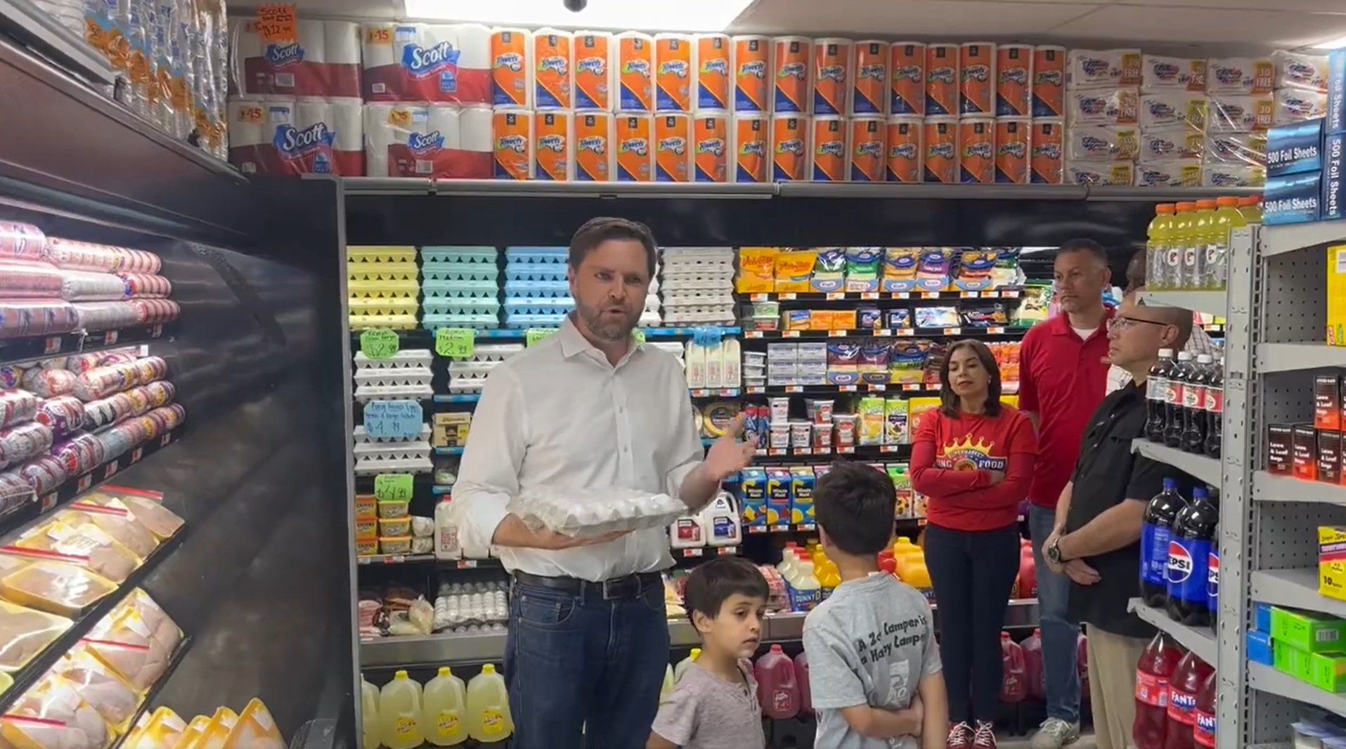 The problem, according to eagle-eyed internet users, is that there was a price tag for a dozen eggs right behind Vance showing the amount was $1 less than he described.