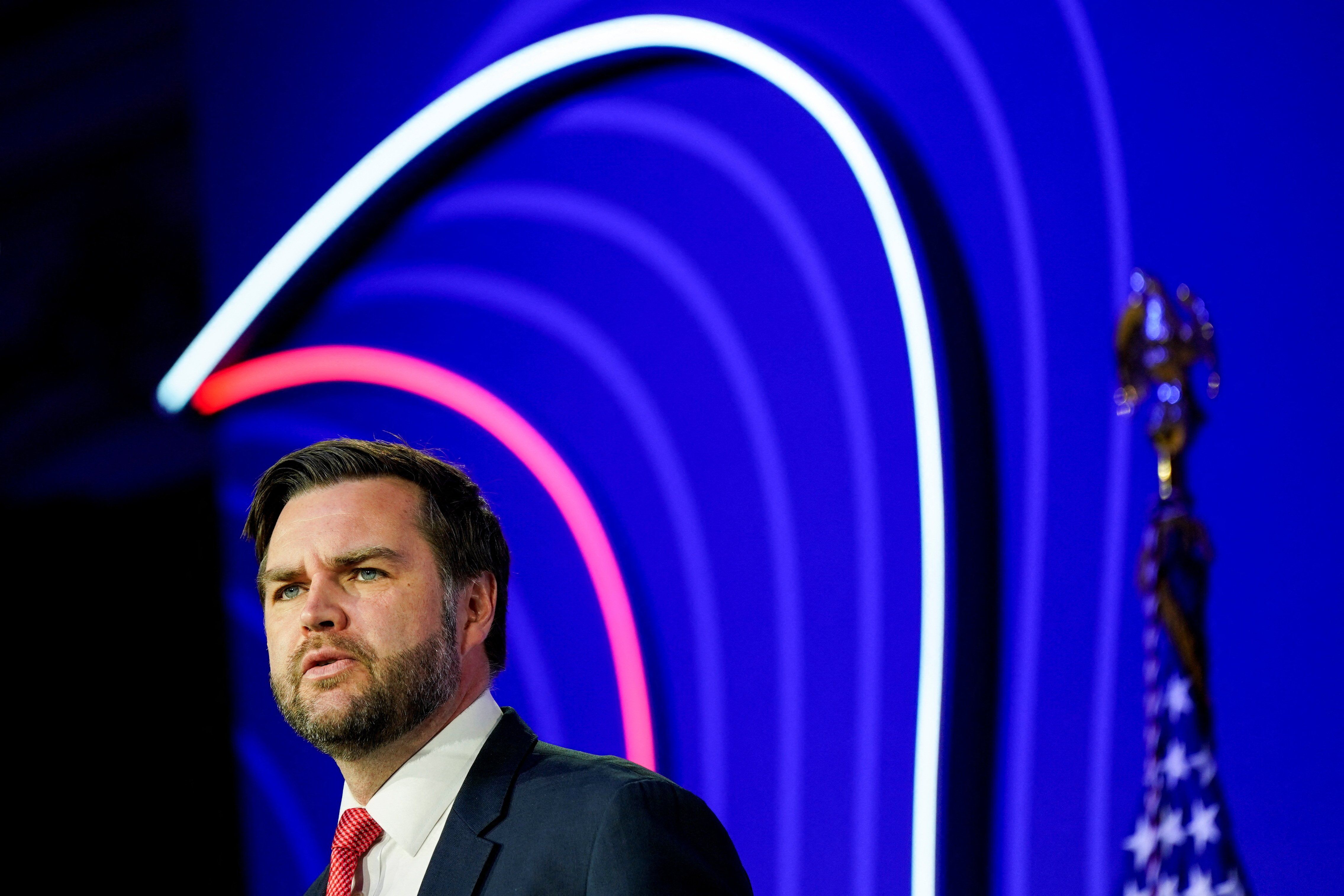 U.S. Vice President JD Vance delivers remarks at the American Dynamism Summit in Washington, D.C., U.S., March 18, 2025. REUTERS/Kent Nishimura