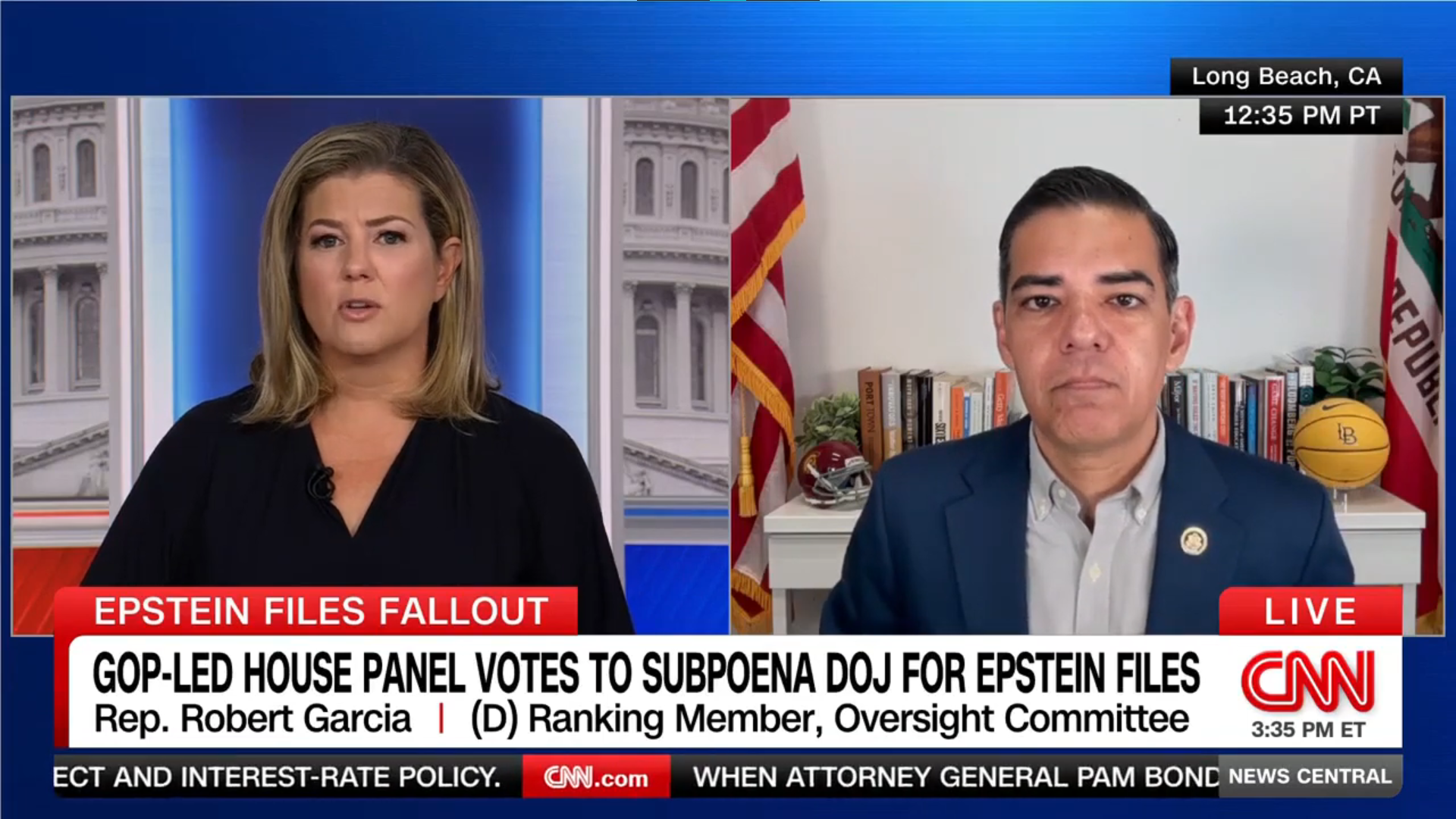 House Democrats succeeded Wednesday in adopting a measure to subpoena the DOJ for files on Epstein in the House Oversight Subcommittee, and to compel Epstein associate Ghislaine Maxwell to testify, with the support of a few House Republicans. On Thursday, Garcia sent a letter to Rep. James Comer (R-KY), chair of the House Oversight Committee, urging him to support the measure further.