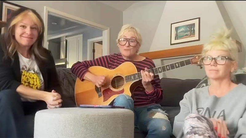 Jill Sobule (center) sings with Michelle Lewis (left) and Kay Hanley (right) (Photo: Screen capture via Facebook video)