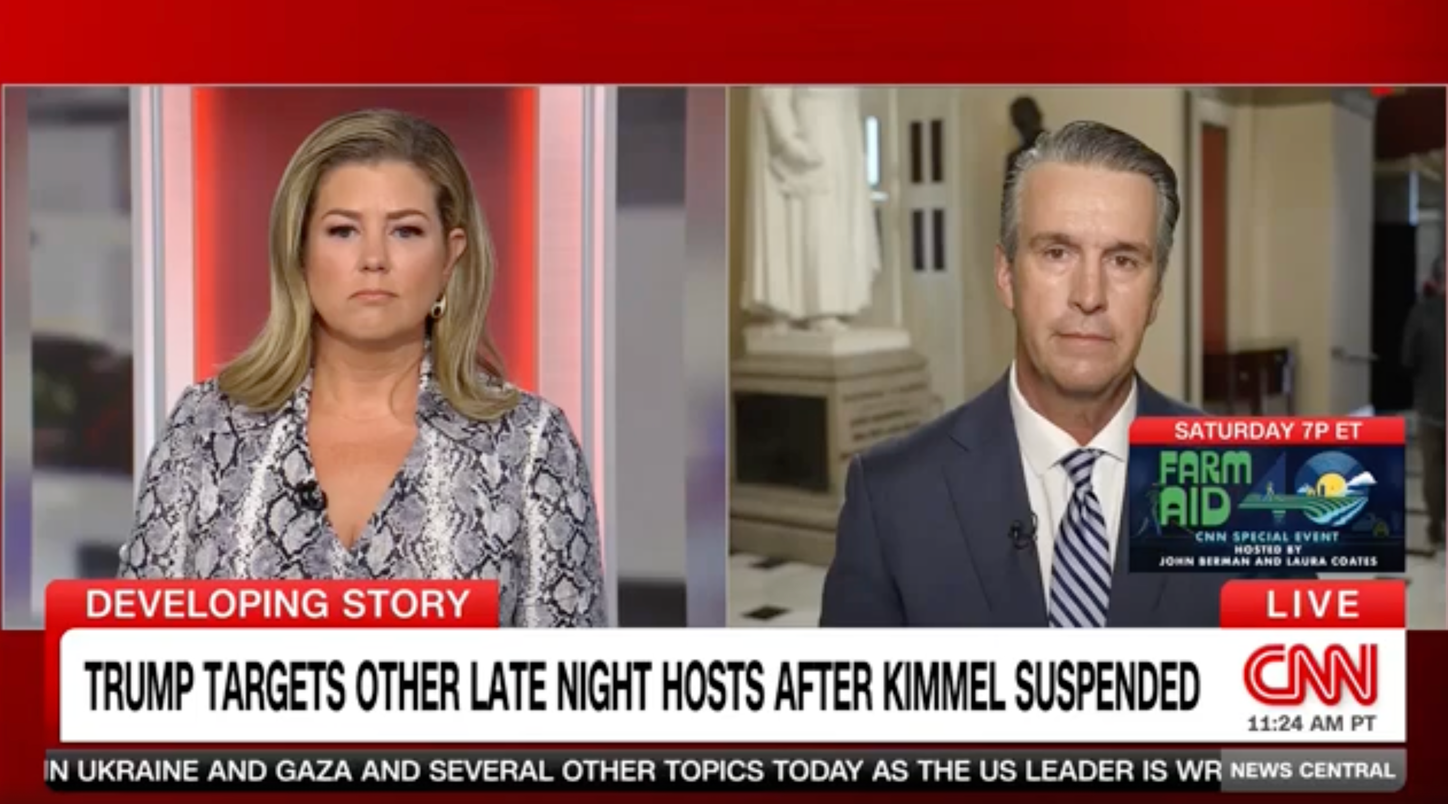 A CNN anchor blasted a Republican on Thursday during a heated exchange over free speech in the aftermath of Jimmy Kimmel's show getting pulled indefinitely, asking, "Who do you want free speech for?"