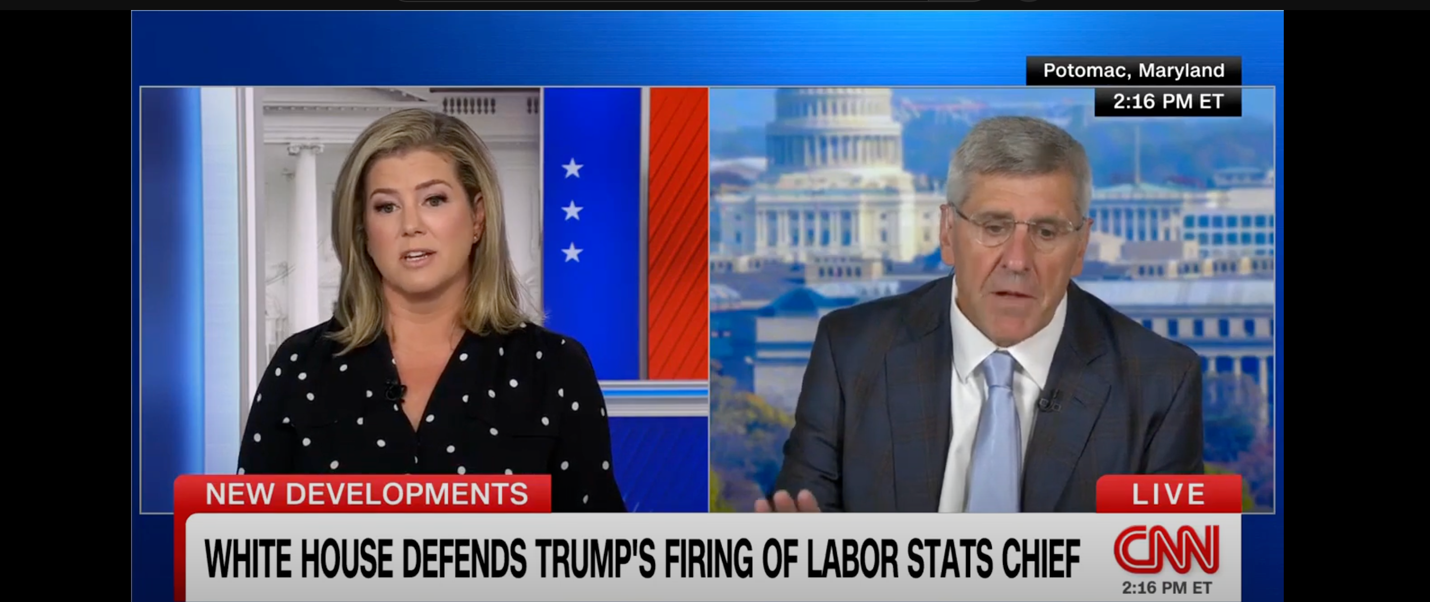 Economist Stephen Moore, who served as senior economic advisor during Donald Trump's first term, appeared on CNN to support the president's claim that the latest job report put out by the Bureau of Labor Statistics was "rigged" against him.