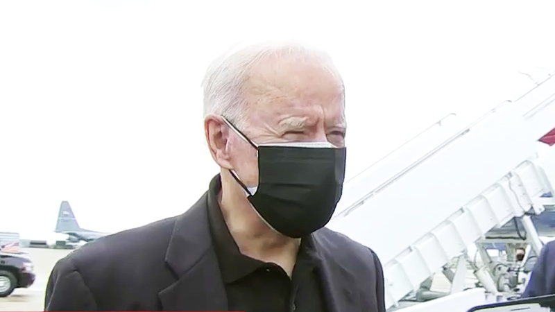 "I'm the only one that's ever got it passed, man," said Biden, double-masked and carrying his own bags. "Everybody keeps wondering if I care about rational gun control. The only gun control that has ever passed is mine. It's going to happen again."