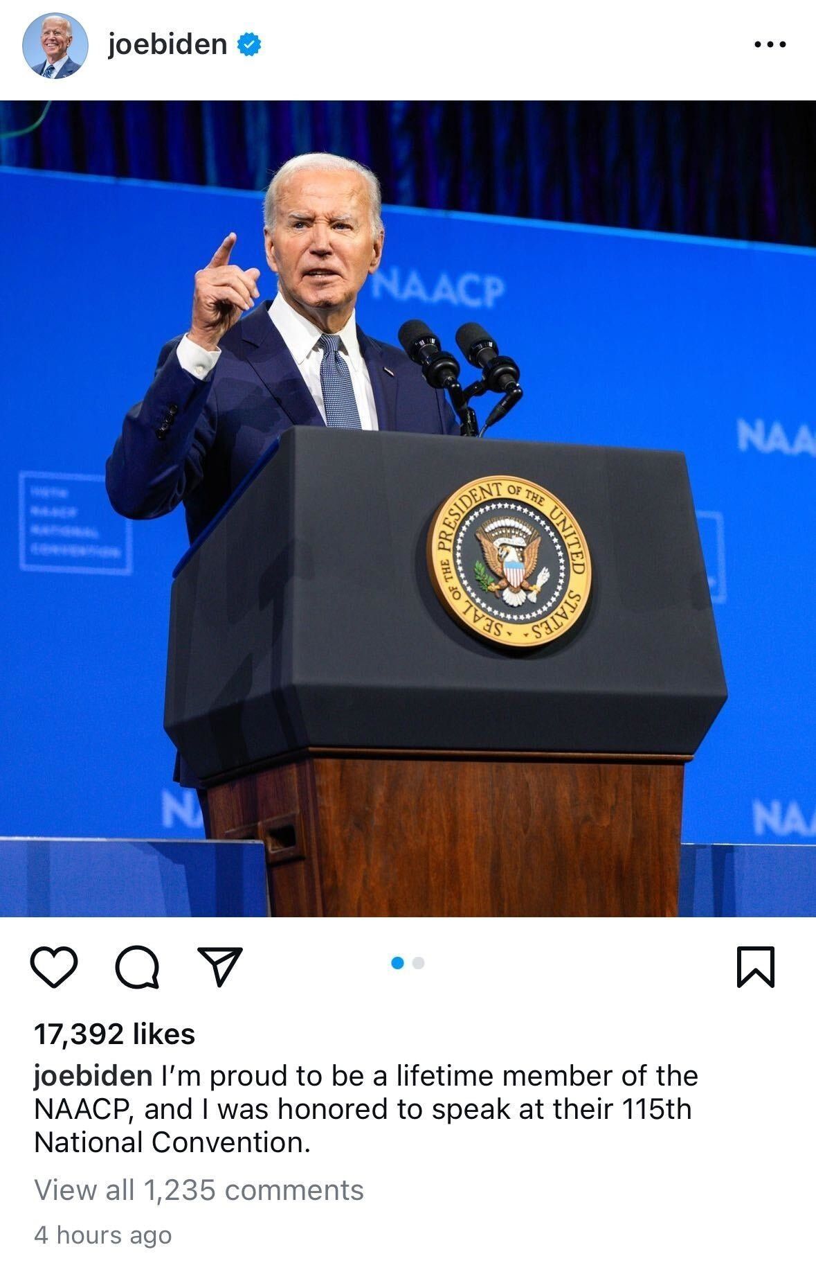 Biden's social media accounts remained active supporting his reelection platform as well.