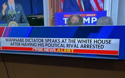 Fox News on Tuesday ran a banner describing President Joe Biden as a "wannabe dictator" who had his "political rival arrested," according to multiple reports.