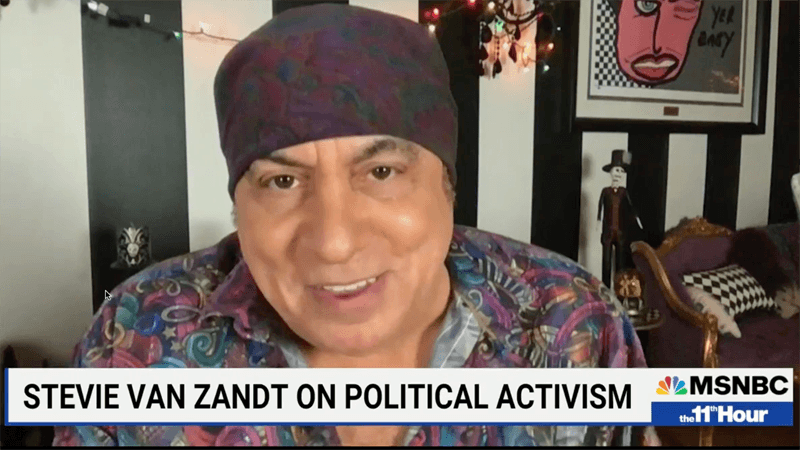 "You know, I mean, I'm rooting for Joe Biden every single day, I really am, you know? I just -- I just got this terrible feeling, you know, and I've had this for a long, long time that we're in a war and only one side is fighting it and I've been feeling that for decades," Van Zandt said. "It's really coming to a very serious place now where we might lose our democracy because of it, you know? And I just -- I just -- I'm not happy with what's going on here."
