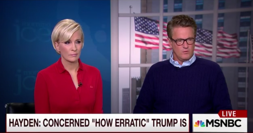 Scarborough then asked his guest, former CIA and National Security Agency Director Michael Hayden, about whether there were any ways to stop Trump from ordering a nuclear strike if he were elected president.