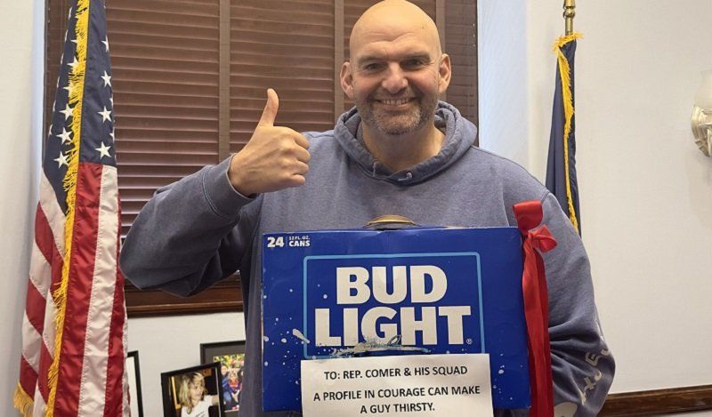 Fetterman trolls James Comer by gifting him a case of Bud Light to drink during impeachment inquiry