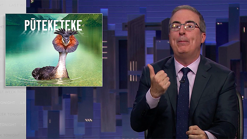 John Oliver's bizarre New Zealand bird campaign for the pūteketeke (Photo: Screen capture)