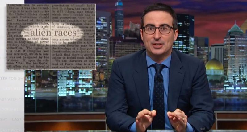 Oliver noted that more than 98 percent of the population of the territories are ethnic minorities, yet their voting rights are restricted despite being U.S nationals living under the American flag.