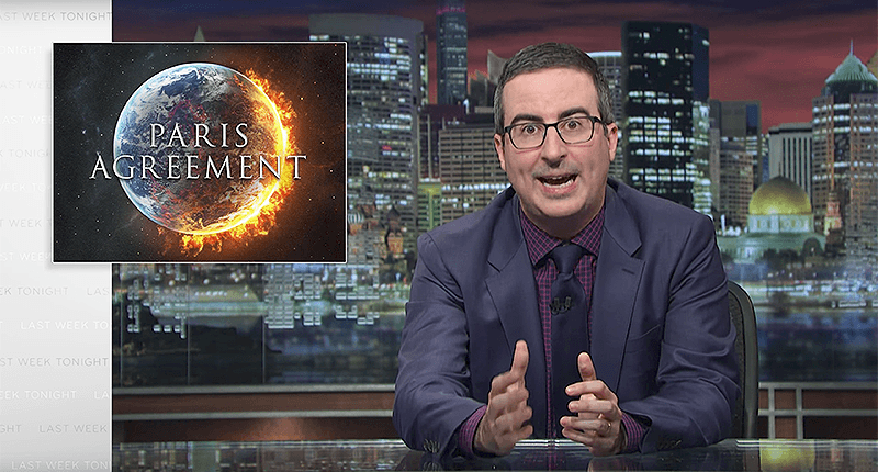 John Oliver was disgusted by President Donald Trump's decision to pull out of the Paris Climate Accord last week. After a touching tribute to the U.K. following the recent London Bridge terrorist attacks, Oliver blasted Trump for a "flamboyantly deceptive" speech withdrawing from the accord.
