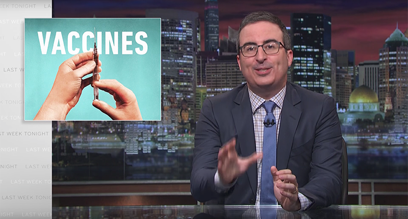 "Now the good news is," Oliver began again. "These days, very few people will say they are completely anti-vaccine. Instead, like the president, they'll say, 'I'm not anti-vaccine, but...' — and it's what comes after that 'but' that week need to look at."