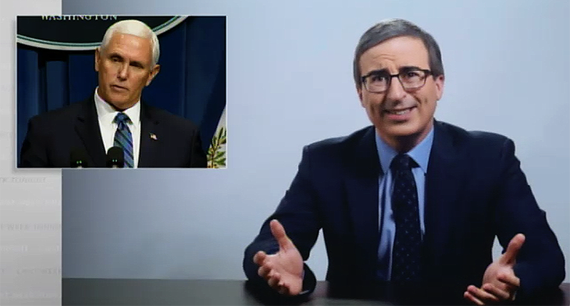 "What!?" comedian John Oliver shouted at Pence at the top of his Sunday episode of "Last Week Tonight."