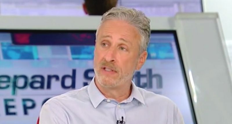 Comedian Jon Stewart speaks to Fox News' Shepard Smith. Image via screengrab.