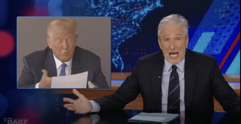 Stewart mocked Trump by playing Trump's recounting of the Battle of Gettysburg and Confederate General Robert E. Lee, which the former president stated Lee once lamented they fought uphill and stated "'Wow, that was a big mistake.'"