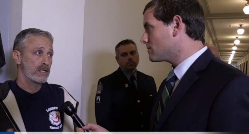 Stewart then took aim once again at Senate Majority Leader Mitch McConnell (R-KY), reiterating his statement from a day earlier that McConnell boasted about providing care for nuclear workers and then pulled the Zadroga Act from a highway funding bill.