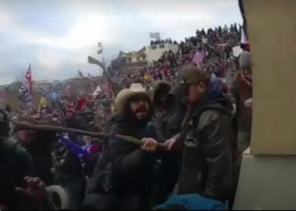 According to an affidavit filed in the case, Mellis took a stick from another rioter and followed him towards the officers. Based on a review of body-worn camera footage, the affidavit says Mellis can be heard saying, "Knock the masks off," before showing him wielding the stick and striking at the officers defending the entryway to the tunnel.