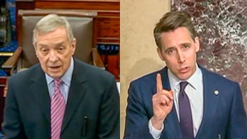 But Durbin suggested that Hawley was grandstanding for the QAnon viewers. Members of the movement believe that Democrats are running a vast pedophile ring.