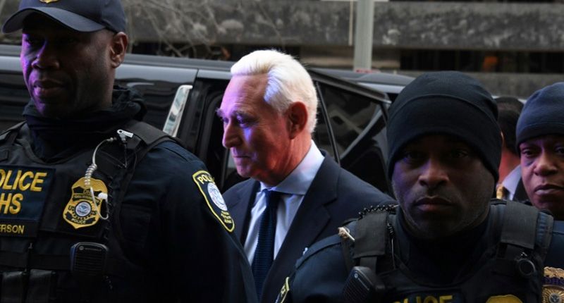 Longtime Donald Trump adviser Roger Stone arrives for his arraignment on charges of lying to Congress. (AFP / Jim WATSON)