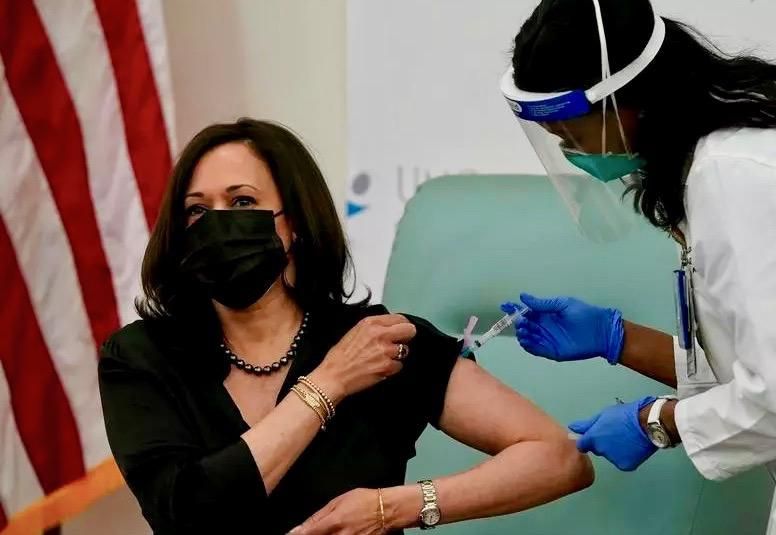A mask-wearing Harris received the first of her two shots at United Medical Center, located in an area of Washington, DC with a large African-American population.