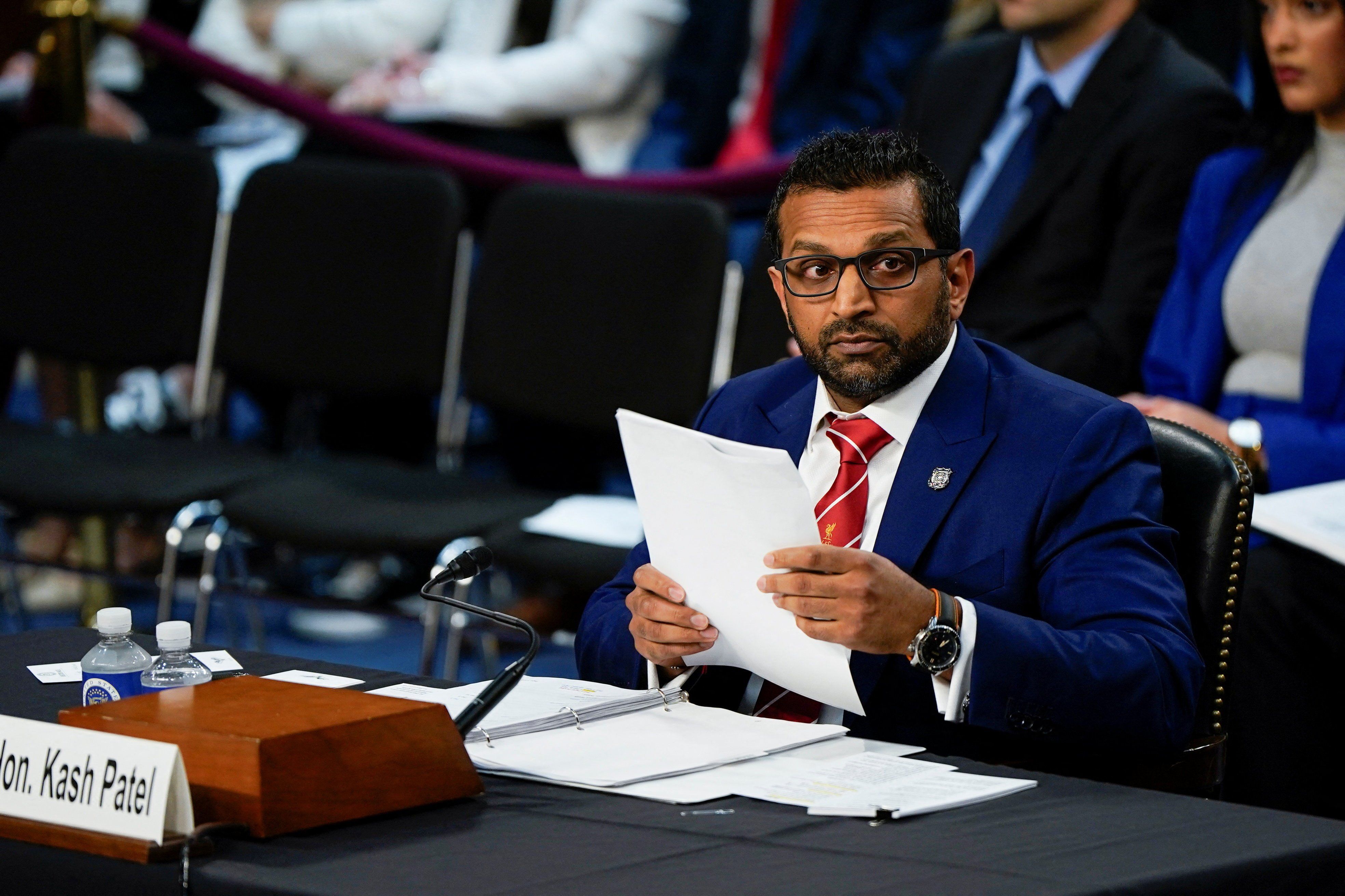 FBI Director Kash Patel testifies before a Senate Judiciary Committee hearing on oversight of the Federal Bureau of Investigation, on Capitol Hill in Washington, D.C., U.S., September 16, 2025. REUTERS/Elizabeth Frantz