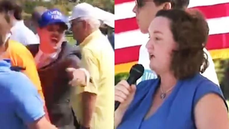 As Porter spoke, protesters shouted "Carpetbagger Katie!" and "Corrupt Katie Porter" and continued to interrupt her as she spoke. Eventually, a few people confronted the protesters, resulting in punches being thrown and "men falling to the ground," according to the Times' report. Porter reportedly rushed over to the scuffle and tried to protect an elderly woman who was nearby when the fight broke out.
