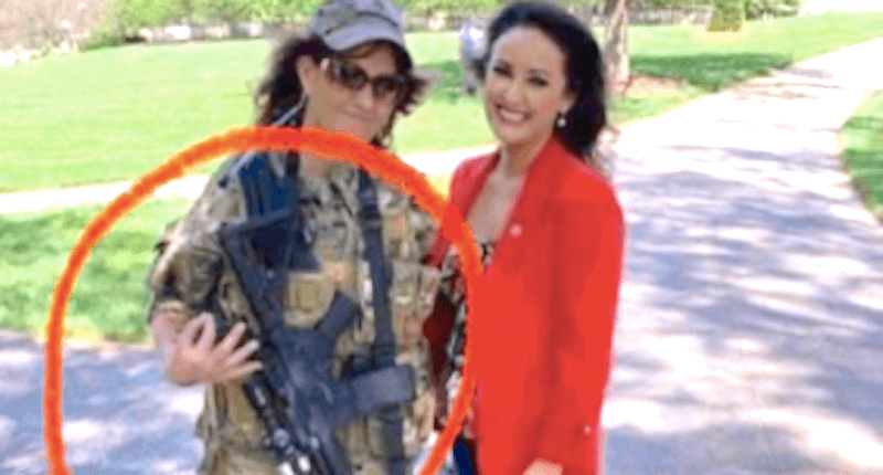 State Rep. Savannah Maddox (R-Dry Ridge) complained at Saturday's demonstration that Gov. Andy Beshear had made Kentuckians "prisoners in their own homes," and a photo taken at the protest shows her next to a rifle-toting Florida woman flashing the "OK" hand gesture that's been adopted by white supremacists, reported the Courier-Journal.