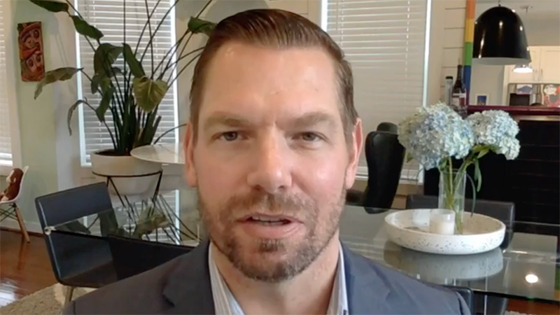 Swalwell said that "this just looks like a guy who knows that his team did a lot to work with the president and to assemble, incite, and assist with the insurrection and now has the shovels out to bury the evidence."