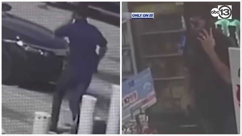 Security footage shows the man following the woman into a convenience store in Texas and pointing a gun at her multiple times. The man, allegedly 30-year-old Kevin Roth, has since been charged with aggravated assault with a deadly weapon.