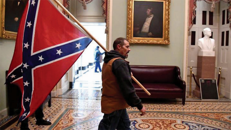 "Kevin Seefried, who was photographed carrying a Confederate flag in the U.S. Capitol during the Jan. 6 riots in Washington, has been indicted by a grand jury on five counts related to obstruction, entering restricted property and disorderly conduct," CNBC reported Thursday. "Seefried's son, Hunter Seefried, was also indicted. The younger Seefried faces the same five counts as his father in addition to three charges related to destruction of government property and violence on Capitol grounds."