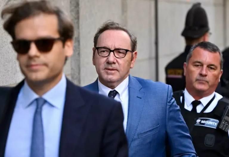 US actor Kevin Spacey arrives at the Old Bailey in London on July 14, 2022 to appear in court over four counts of sexual assault