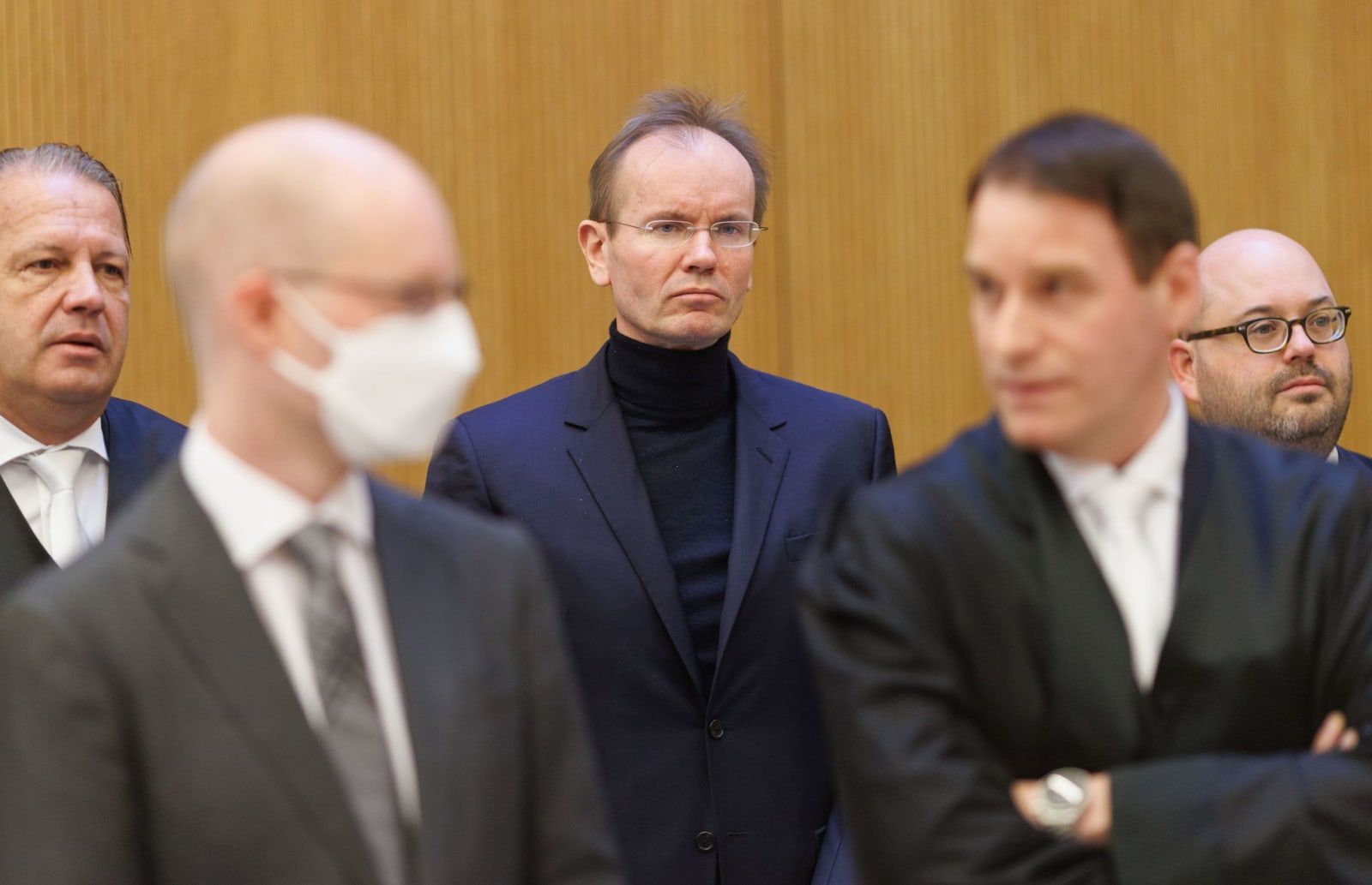 Former Wirecard CEO Markus Braun (C) attends one of Germany's biggest fraud trials in decades, where he and two co-defendants face charges of forming a criminal gang, falsifying the group's balance sheets and cheating lenders out of €3.1 billion ($3.26 billion). Lukas Barth/dpa
