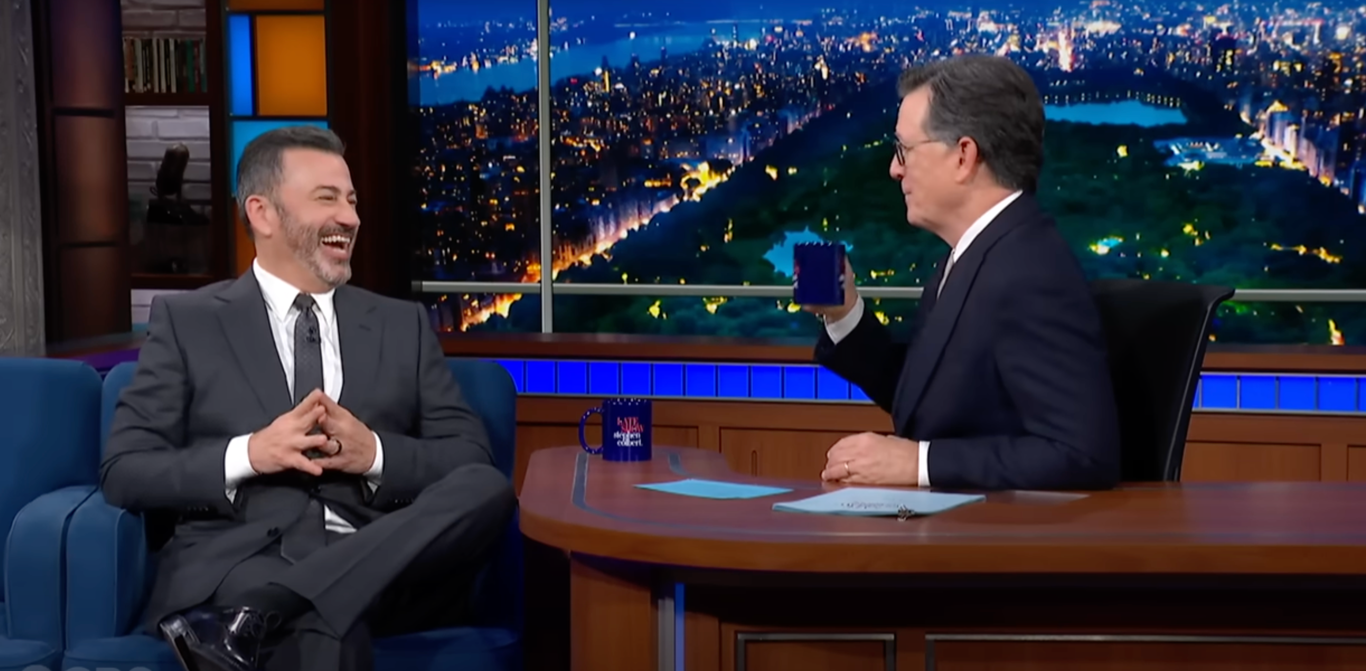 Jimmy Kimmel joins Stephen Colbert on The Late Show on September 30, 2025. (The Late Show screengrab)