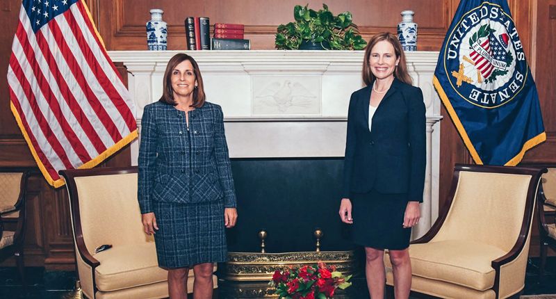 "Today, I had the pleasure of sitting down with Judge Amy Coney Barrett, whose grace and incredible command of the law are as evident in person as they were during her confirmation hearings. I look forward to voting in favor of her historic confirmation," McSally posted on Twitter with a photo of the two.
