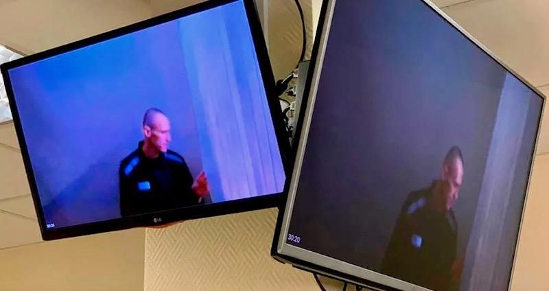 In his first appearance since declaring an end to a three-week hunger strike last week, Navalny, his head shaven, remained defiant, though the blurry video link from jail showed he had lost weight.