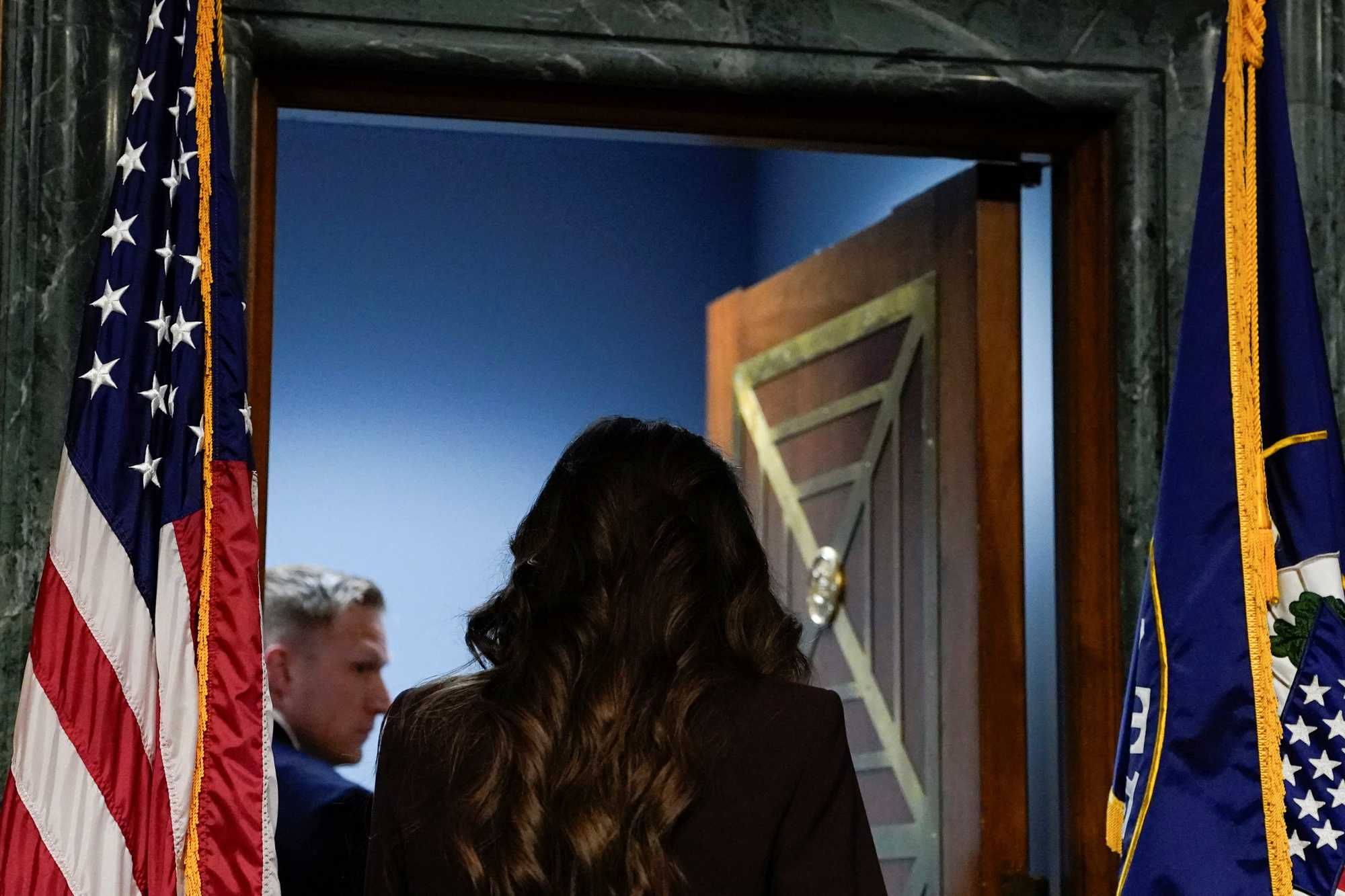 Homeland Security Secretary Kristi Noem leaves her Senate hearing. REUTERS/Elizabeth Frantz