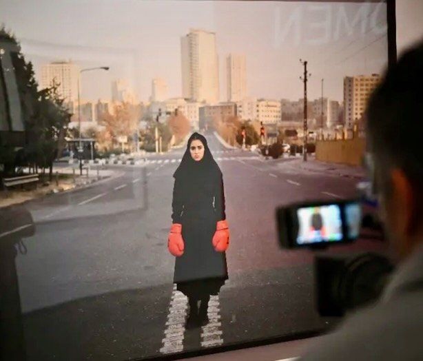 One powerful picture by Iranian photojournalist Newsha Tavakolian shows an Iranian woman in traditional clothes -- also wearing a pair of boxing gloves.