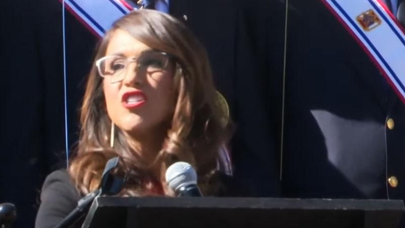 Lauren Boebert speaking at a Columbus Day event. (Screenshot)