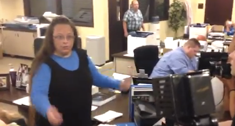 Davis was sent to jail on Thursday for continuing to disobey court orders to issue same-sex marriage licenses. She has maintained that complying with the Supreme Court's landmark decision legalizing same-sex marriage in all 50 states violates her religious beliefs, according to Right Wing Watch.