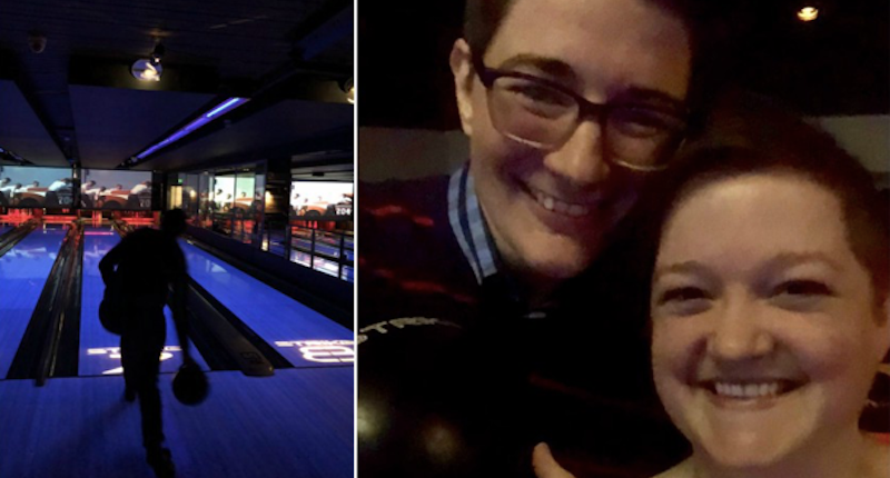 The couple went to the Strike bowling alley in Australia. They bowled a few hours, then headed to the restrooms.