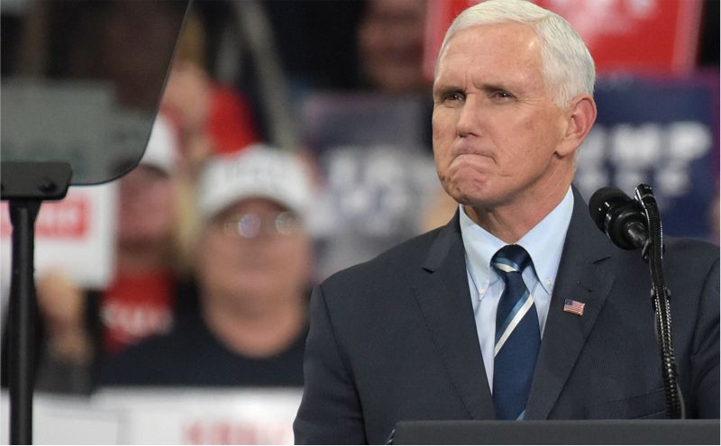 HERSHEY, PENNSYLVANIA/USA DECEMBER 10, 2019: Vice-President Mike Pence appears during a rally Dec. 10, 2019, at Giant Center in Hershey, PA.