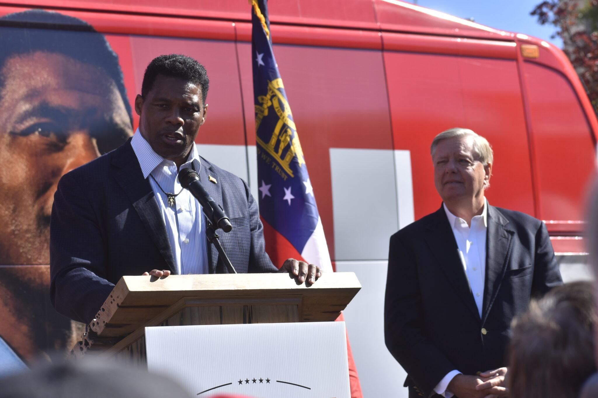Herschel Walker and Sen. Lindsey Graham speak at an Oct. 18 rally. Ross Williams/Georgia Recorder