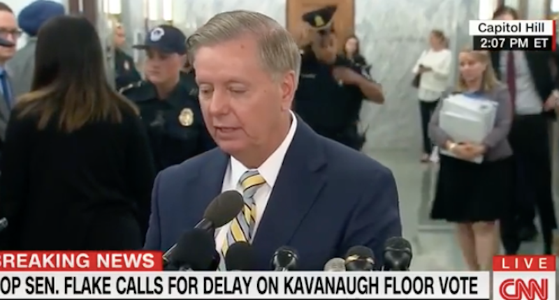 Sen. Lindsey Graham (R-SC), who's been largely dismissive of the accusations against Brett Kavanaugh, said that he was on his way to speak with Sen. Mitch McConnell (R-KY) about the ramifications of the committee's vote in light of the most recent developments.