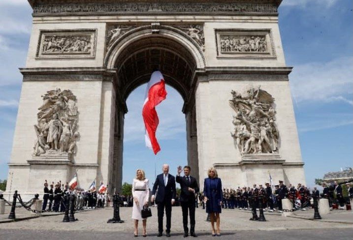 During a welcome ceremony in Paris, Macron and Biden laid a wreath and rekindled the flame on the tomb of the Unknown Soldier.